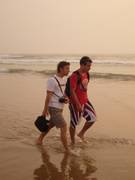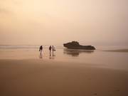 Nicht nur wegen der Wellen ist der Strand echt enspannt: Berber bieten Kamel-Touren an (einmal den Strand hoch und runter), die Jungs spielen Fussball, Ping-Pong, und hey, die kleinen Knirpse auf ihren Short-Boards legen auch ordentliche Stunts hin. Wir sind gestern abend über den Strand zurückgelaufen... und wären da nicht die Locales, die wie Irre auf Squads am Strand heizen, und Grenzposten (?) in bestimmten Abständen mit Marokkoflagge, die Stimmung mit leichtem Nebel, rot schimmernden Fels-Findlingen, und einer Sonne, die einer Perle gleich aus dem Nebel herausscheint...
