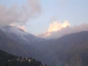 Angekommen um 7 Uhr in der kleine Tempelstadt McLoyd/Dharamshala hiess es erstmal, tibetanisch fruehstuecken: tibetanisches Brot mit Butter und Honig, Kaffee, Omlett... lecker. Charoll kannte sich aus, und die Shopping-Tour war sehr angenehm und eine gute Erholung. Wir sahen jede Menge in safrangelb und granatrot gekleidete Buddhisten, viel 'Holy Shit', sowohl von den Kuehen, als auch bei Kraemern, unzaehlige Affen und ein gewaltiges Granitgebirge mit seinen gruenen Waeldern, gekroent von ewig währenden, majestätischen Schneegipfeln.